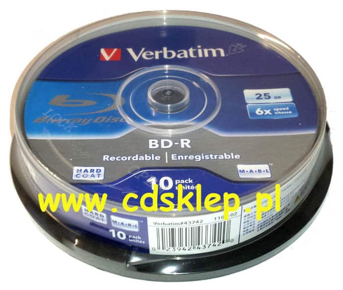 Verbatim Blu-Ray BD-R 25GB Prędkość nagrywania x6. Opakowanie zbiorcze 10szt. (cake).